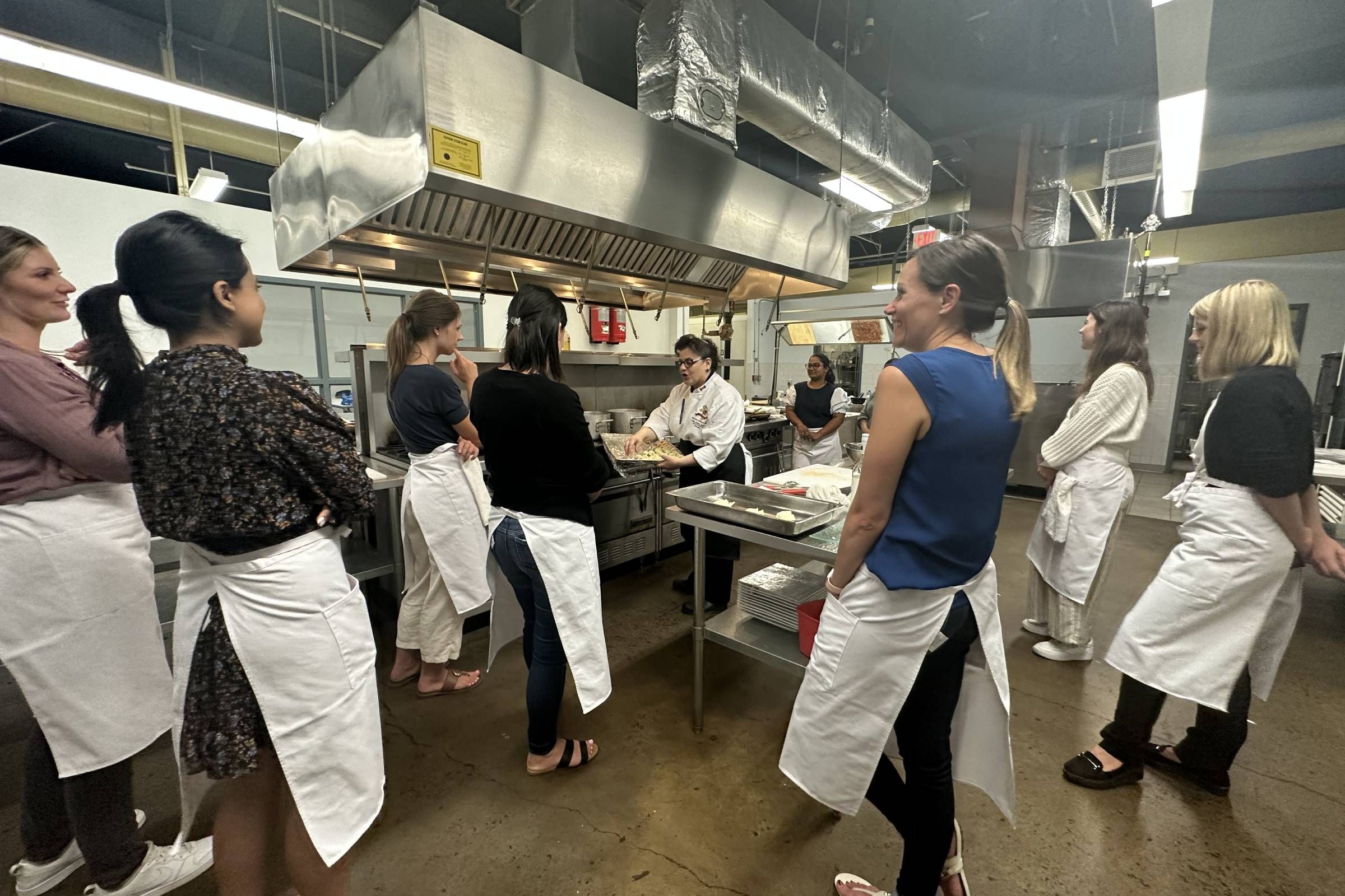 Under the expert guidance of our Award-Winning Certified Chef Instructors with extensive teaching and coaching experience, you and the other members of your team will perform key tasks in the preparation of a three-course menu, collaborating to achieve a common goal. In the process, you’ll pick up terrific cooking tips and build stronger bonds with your co-workers in a fun and relaxed environment. Together you will all enjoy a fabulous meal that you collaborated on to create.