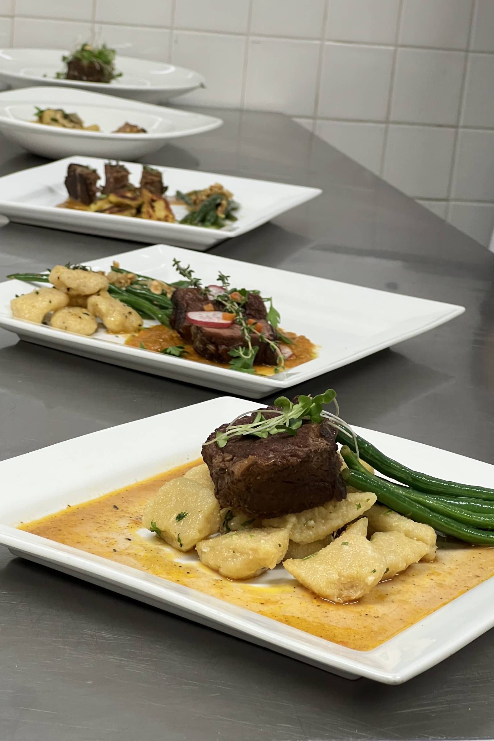 Menu: Roasted Tomato Soup, Braised Beef Short Ribs In Red Wine Sauce served with Homemade Gnocchi and Green Beans Almondine, Crème Brulee and Vanilla bean coconut Ice cream